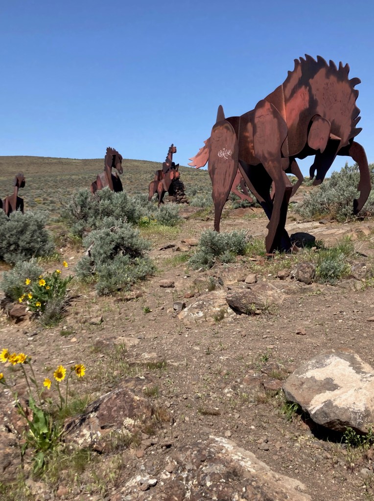 each horse rooted into basalt
