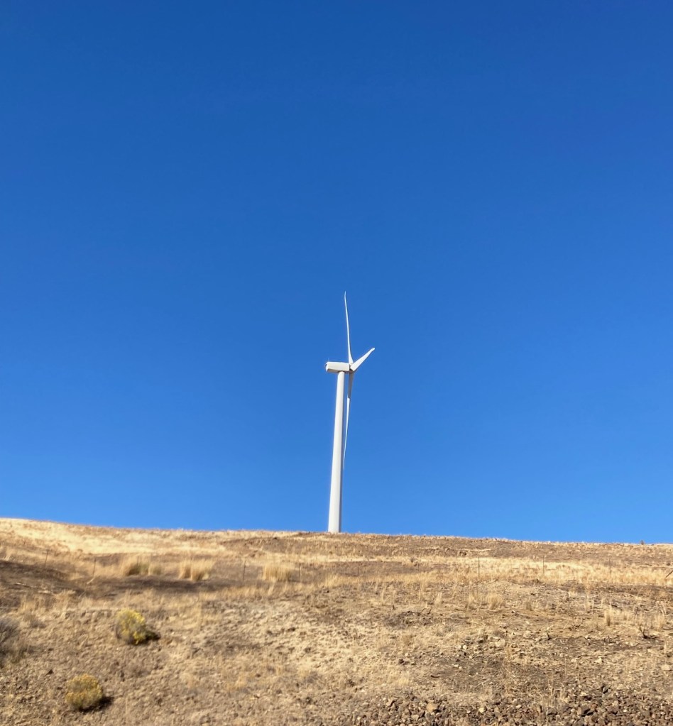 White wind turbines,