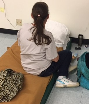 before bedding down on mats when lights go out.